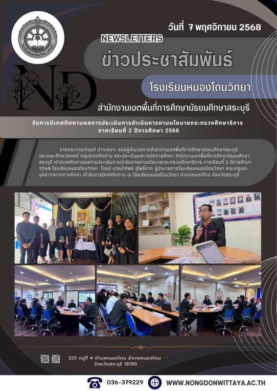 วันที่ 7 พฤศจิกายน 2568 นายตระการเกียรติ ปากเสนาะ รองผู้อำนวยการสำนักงานเขตพื้นที่การศึกษามัธยมศึกษาสระบุรี และคณศึกษานิเทศก์ กลุ่มนิเทศติดตาม และประเมินผลการจัดการศึกษา สำนักงานเขตพื้นที่การศึกษามัธยมศึกษาสระบุรี เข้านิเทศติดตามผลการประเมินการดำเนินการตา