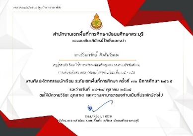 ชื่อผลงาน : ครูผู้ฝึกสอนนักเรียน ได้รับรางวัลระดับเหรียญทอง รองชนะเลิศอันดับ 2 การแข่งขันจัดสวนถาด (สวนแก้ว) ระดับมัธยมชั้น ม.4 - ม.6 งานศิลปหัตถกรรมนักเรียน ระดับเขตพื้นที่การศึกษา ครั้งที่ 70 ปีการศึกษา 2565