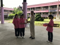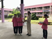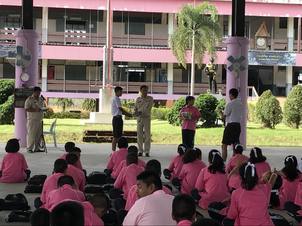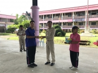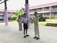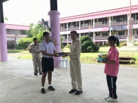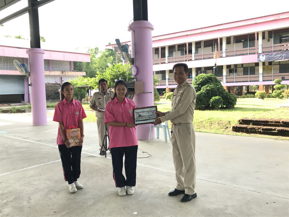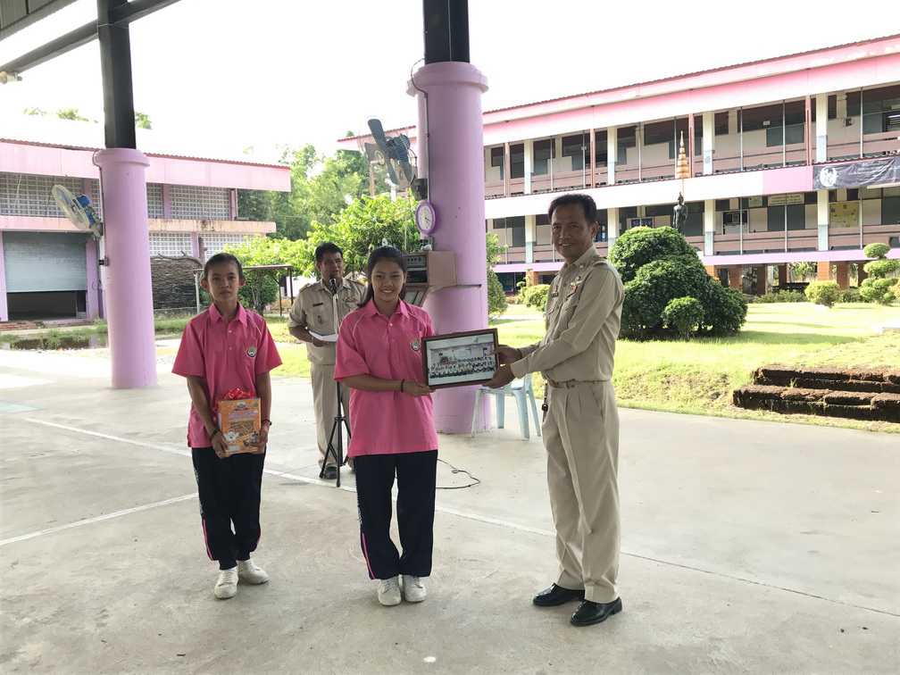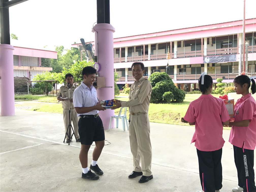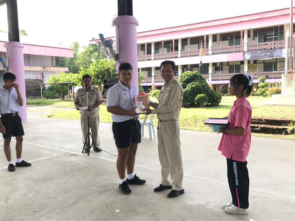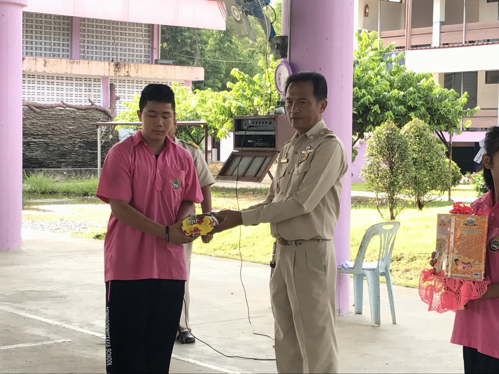 นายสุชาติ กรดงาม ท่านผู้อำนวยการโรงเรียนหนองโดนวิทยา มอบรางวัลให้แก่ตัวแทนนักเรียนที่ชนะการประกวดพานไหว้ครู ประจำปี 2560