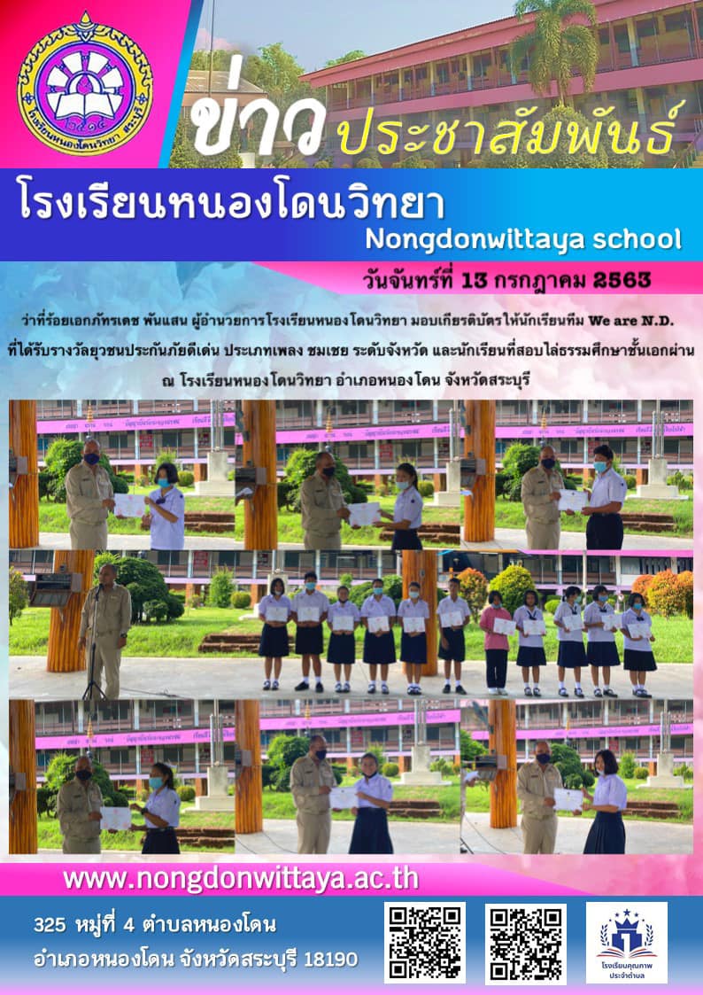 นักเรียนโรงเรียนหนองโดนวิทยาได้รับรางวัลยุวชนประกันภัยดีเด่น