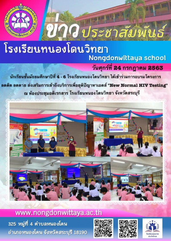 นักเรียนโรงเรียนหนองโดนวิทยาเข้าร่วมการอบรมเรื่อง New Normal HIV Testing
