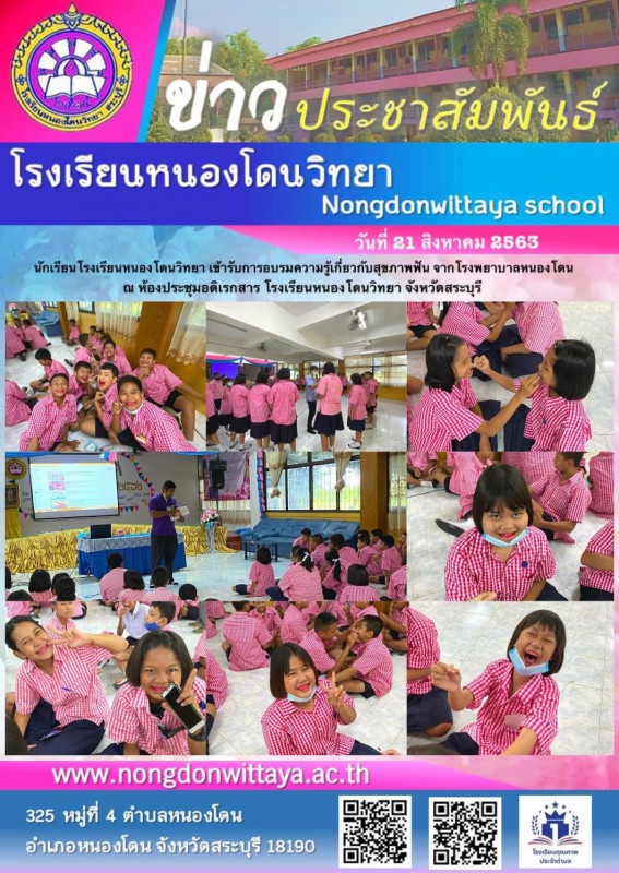 นักเรียนโรงเรียนหนองโดนวิทยาเข้ารับอบรมความรู้เกี่ยวกับสุขภาพฟัน