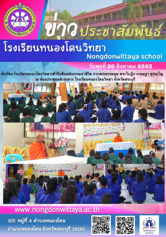 นักเรียนโรงเรียนหนองโดนวิทยาเข้ารับฟังหลักธรรมนำชีวิต จากพระธรรมทูต