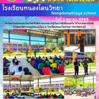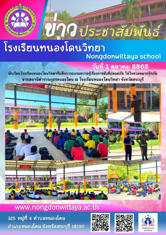นักเรียนโรงเรียนหนองโดนวิทยารับฟังความรู้เรื่องการขับขี่ปลอดภัย จากสถานีตำรวจภูธรหนองโดน