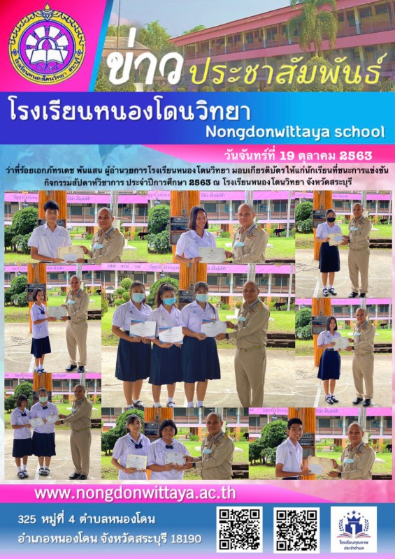 การมอบเกียรติบัตรให้แก่นักเรียนที่ชนะการแข่งงาน กิจกรรมสัปดาห์วิชาการ ประจำปีการศึกษา 2563