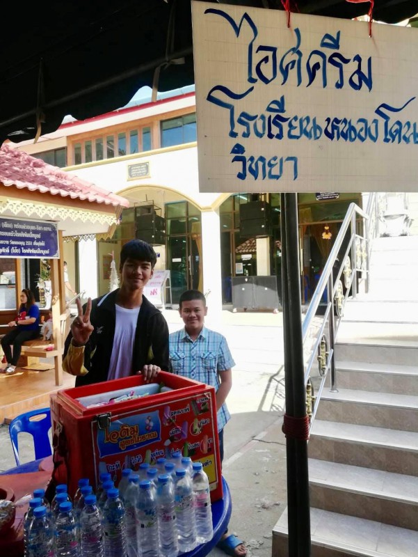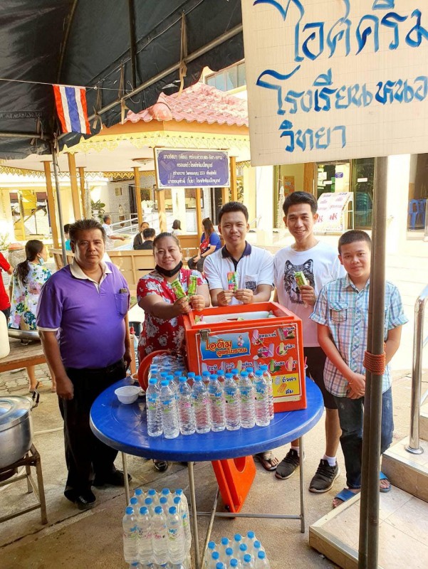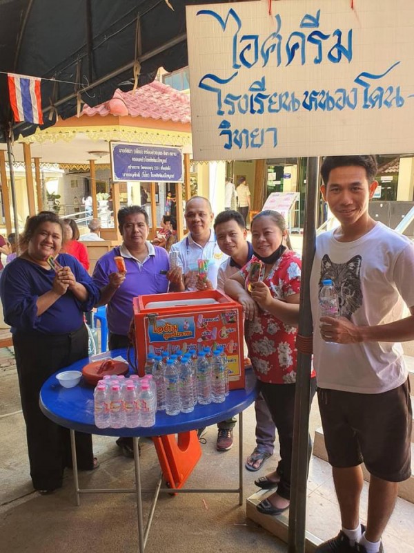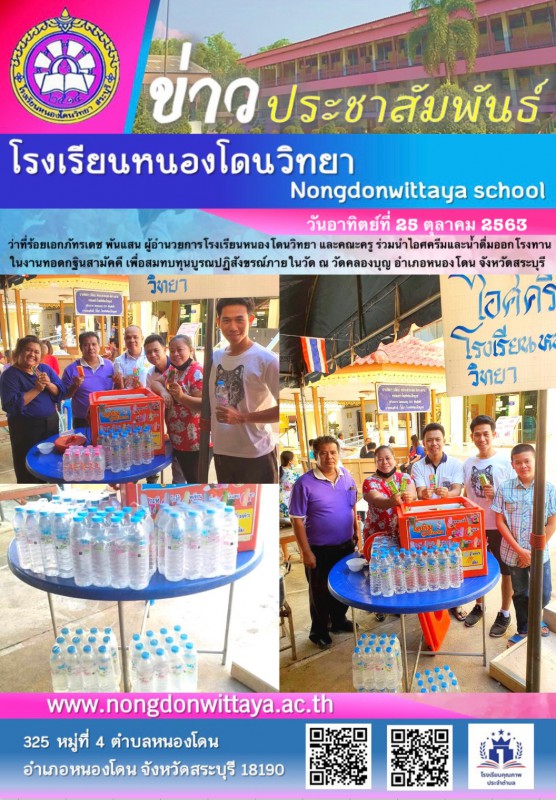 โรงเรียนหนองโดนวิทยาร่วมนำน้ำดื่มและไอศกรีมออกโรงทาน งานทอดกฐินสามัคคี ณ วัดคลองบุญ อำเภอหนองโดน จังหวัดสระบุรี