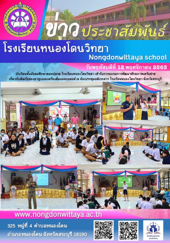 นักเรียนชั้นมัธยมศึกษาตอนปลาย เข้ารับการอบรมความรู้ในการพัฒนาศักยภาพเครือข่ายฯ เกี่ยวกับโทษ และพิษภัยของการบริโภคยาสูบและเครื่องดื่มแอลกอฮอล์