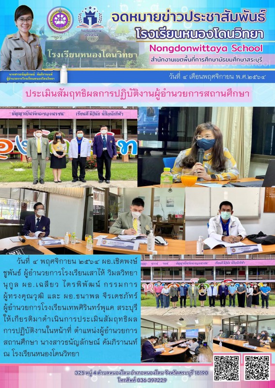 วันที่ ๔ พฤศจิกายน ๒๕๖๔ ผอ.เชิดพงษ์ ชูพันธ์ ผู้อำนวยการโรงเรียนเสาไห้ วิมลวิทยานุกูล ผอ.เฉลียว ไตรพิพัฒน์ กรรมการผู้ทรงคุณวุฒิ และ ผอ.ธนาพล จีรเดชภัทร์ ผู้อำนวยการโรงเรียนเทพศิรินทร์พุแค สระบุรี ให้เกียรติมาดำเนินการประเมินสัมฤทธิผลการปฏิบัติงานในหน้าที่