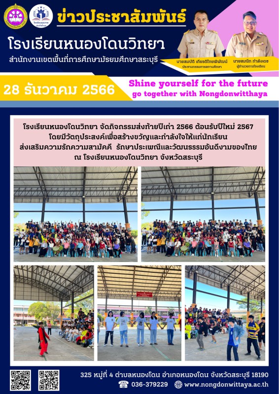 วันที่ 28 ธันวาคม 2566 โรงเรียนหนองโดนวิทยา จัดกิจกรรมส่งท้ายปีเก่า 2566 ต้อนรับปีใหม่ 2567