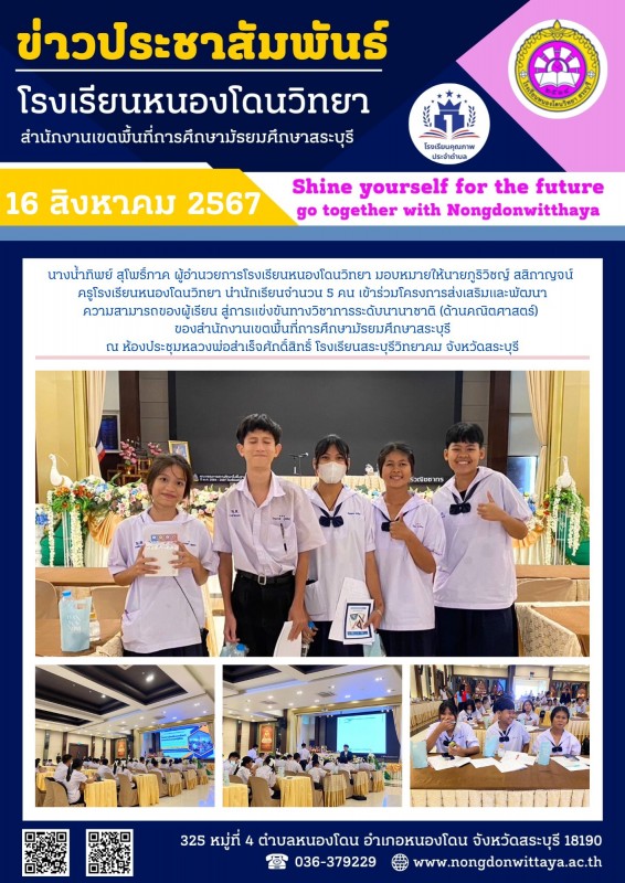 วันที่ 16 สิงหาคม 2567 นักเรียนเข้าร่วมโครงการส่งเสริมและพัฒนาความสามารถของผู้เรียน สู่การแข่งขันทางวิชาการระดับนานาชาติ (ด้านคณิตศาสตร์)