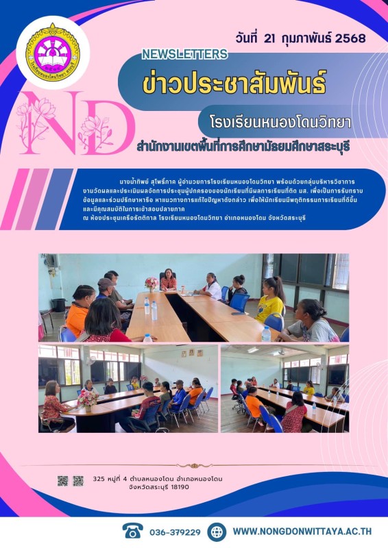 วันที่ 21 กุมภาพันธ์ 2568 นางน้ำทิพย์ สุโพธิ์ภาค ผู้อำนวยการโรงเรียนหนองโดนวิทยา พร้อมด้วยกลุ่มบริหารวิชาการ งานวัดผลและประเมินผลจัดการประชุมผู้ปกครองของนักเรียนที่มีผลการเรียนที่ติด มส. เพื่อเป็นการรับทราบข้อมูลและร่วมปรึกษาหารือ หาแนวทางการแก้ไขปัญหาดัง