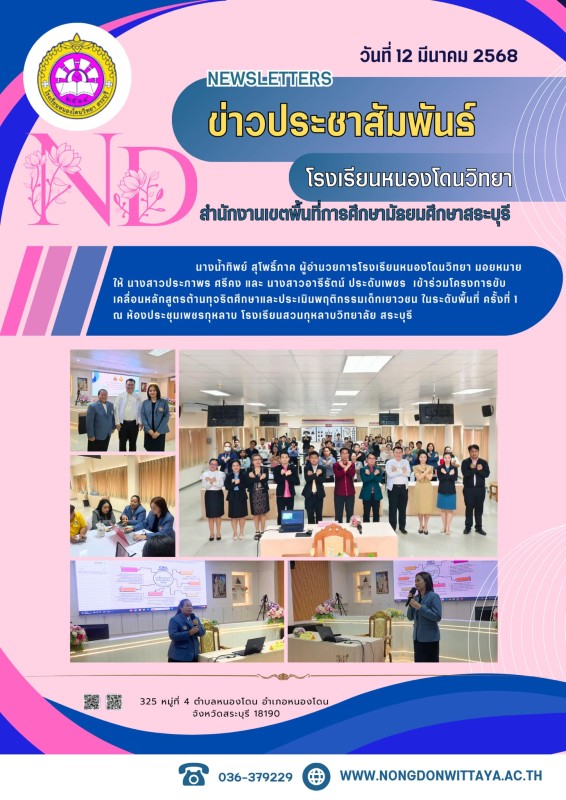 วันที่ 12 มีนาคม 2568 นางน้ำทิพย์ สุโพธิ์ภาค ผู้อำนวยการโรงเรียนหนองโดนวิทยา มอยหมายให้ นางสาวประภาพร ศรีคง และ นางสาวอารีรัตน์ ประดับเพชร เข้าร่วมโครงการขับเคลื่อนหลักสูตรต้านทุจริตศึกษาและประเมินพฤติกรรมเด็กเยาวชน ในระดับพื้นที่ ครั้งที่ 1 ณ ห้องประชุมเ