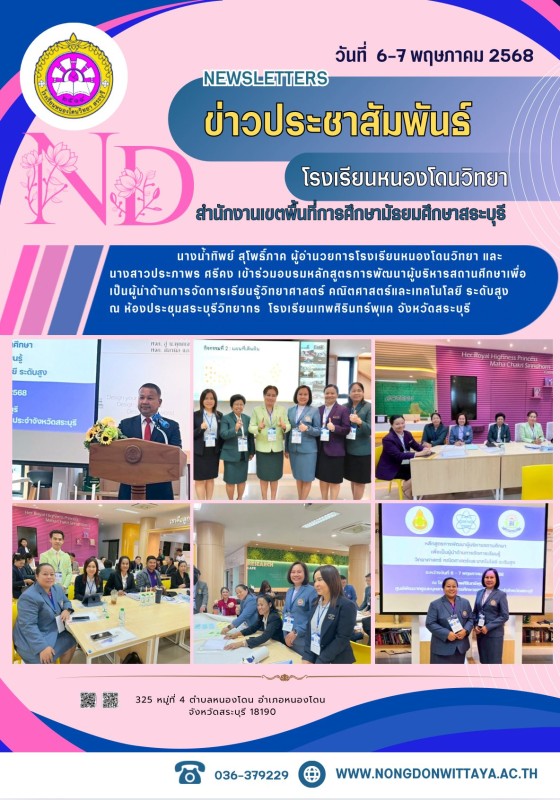วันที่ 6-7 พฤษภาคม 2568 นางน้ำทิพย์ สุโพธิ์ภาค ผู้อำนวยการโรงเรียนหนองโดนวิทยา และนางสาวประภาพร ศรีคง เข้าร่วมอบรมหลักสูตรการพัฒนาผู้บริหารสถานศึกษาเพื่อเป็นผู้นำด้านการจัดการเรียนรู้วิทยาศาสตร์ คณิตศาสตร์และเทคโนโลยี ระดับสูง ณ ห้องประชุมสระบุรีวิทยากร โ
