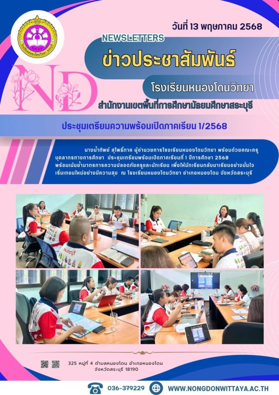 วันที่ 13 พฤษภาคม 2568 นางน้ำทิพย์ สุโพธิ์ภาค ผู้อำนวยการโรงเรียนหนองโดนวิทยา พร้อมด้วยคณะครู บุคลากรทางการศึกษา ประชุมเตรียมพร้อมเปิดภาคเรียนที่ 1 ปีการศึกษา 2568 พร้อมเน้นย้ำมาตรการความปลอดภัยครูและนักเรียน เพื่อให้นักเรียนกลับมาเรียนอย่างมั่นใจ เริ่มเท