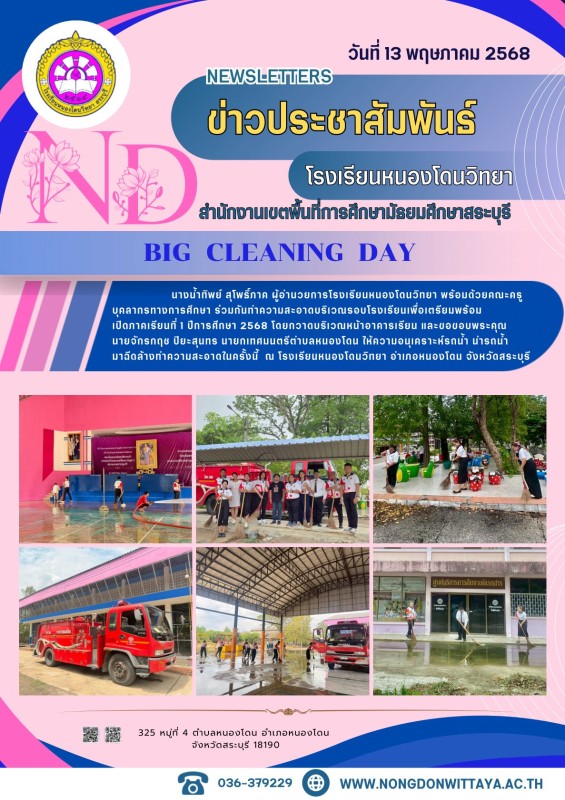 วันที่ 13 พฤษภาคม 2568 นางน้ำทิพย์ สุโพธิ์ภาค ผู้อำนวยการโรงเรียนหนองโดนวิทยา พร้อมด้วยคณะครู บุคลากรทางการศึกษา ร่วมกันทำความสะอาดบริเวณรอบโรงเรียนเพื่อเตรียมพร้อม เปิดภาคเรียนที่ 1 ปีการศึกษา 2568 โดยกวาดบริเวณหน้าอาคารเรียน และขอขอบพระคุณ นายจักรกฤช ปิ