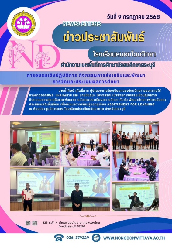 วันที่ 9 กรกฎาคม 2568 นางน้ำทิพย์ สุโพธิ์ภาค ผู้อำนวยการโรงเรียนหนองโดนวิทยา มอบหมายให้ นางสาวจรรยพร แหลมพิมาย และ นายชัยชนะ ไพรวรรณ์ เข้าร่วมการอบรมเชิงปฏิบัติการ กิจกรรมการส่งเสริมและพัฒนาการวัดและประเมินผลการศึกษา หัวข้อ พัฒนาศักยภาพการวัดและประเมินผลใ