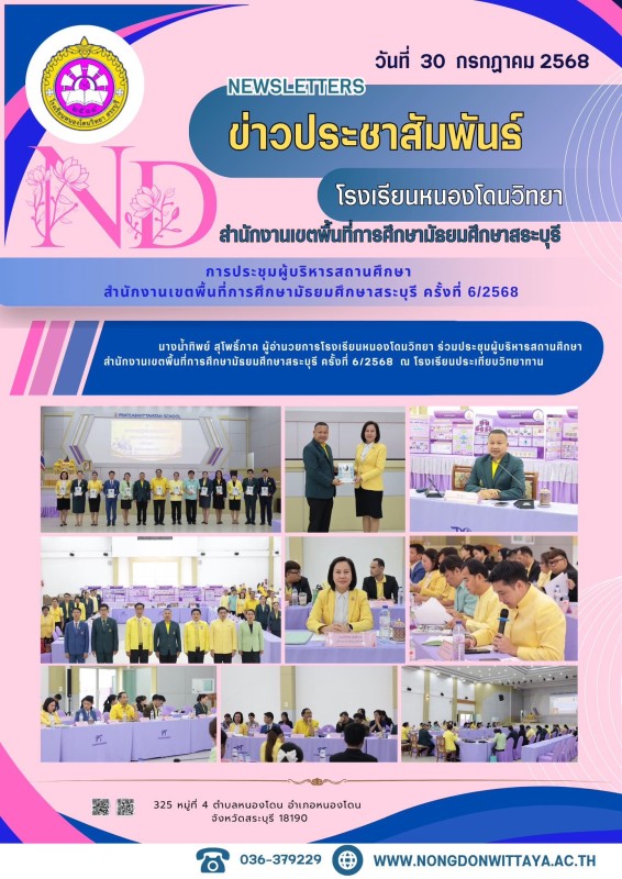 วันที่ 30 กรกฎาคม 2568 นางน้ำทิพย์ สุโพธิ์ภาค ผู้อำนวยการโรงเรียนหนองโดนวิทยา ร่วมประชุมผู้บริหารสถานศึกษา สำนักงานเขตพื้นที่การศึกษามัธยมศึกษาสระบุรี ครั้งที่ 6/2568 ณ โรงเรียนประเทียบวิทยาทาน จังหวัดสระบุรี