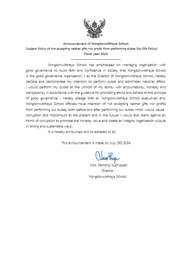 Policy of not accepting neither gifts nor profts from performing duties (No Gift Policy)