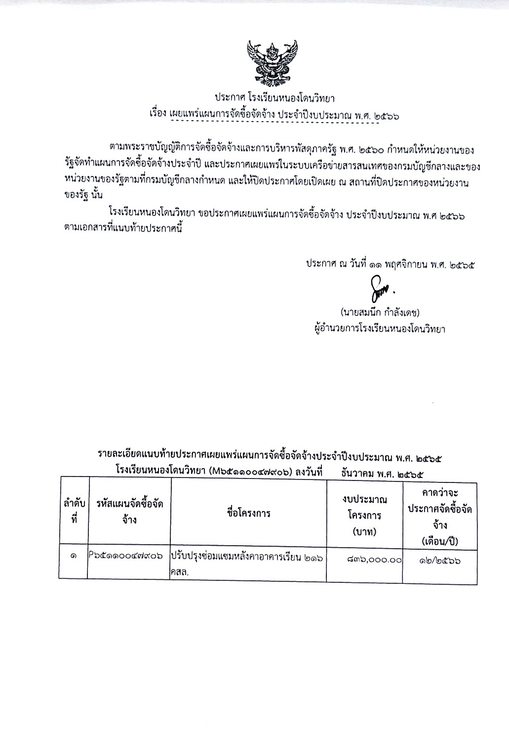 เผยแพร่แผนการจัดซื้อจัดจ้าง ประจำปีงบประมาณ 2566
