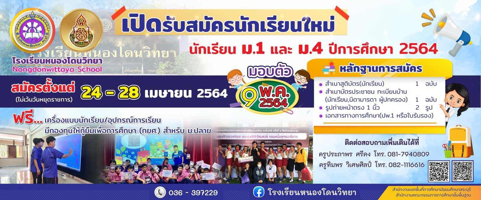 โรงเรียนหนองโดนวิทยา รับสมัครนักเรียนชั้น ม.1 และ ม.4 ปีการศึกษา 2564