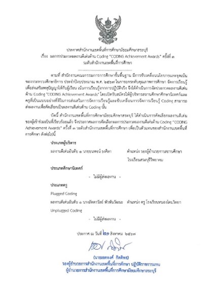 ชื่อผลงาน : รางวัลผลงานดีเด่น อันดับ 1 ผลงานดีเด่น Coding “CODING Achievement Awards” ครั้งที่ 3 ประจำปีการศึกษา 2567 ประเภทครูรายการผลงานครูดีเด่น Plugged Coding ระดับชั้นมัธยมศึกษา ระดับสำนักงานเขตพื้นที่การศึกษามัธยมศึกษาสระบุรี